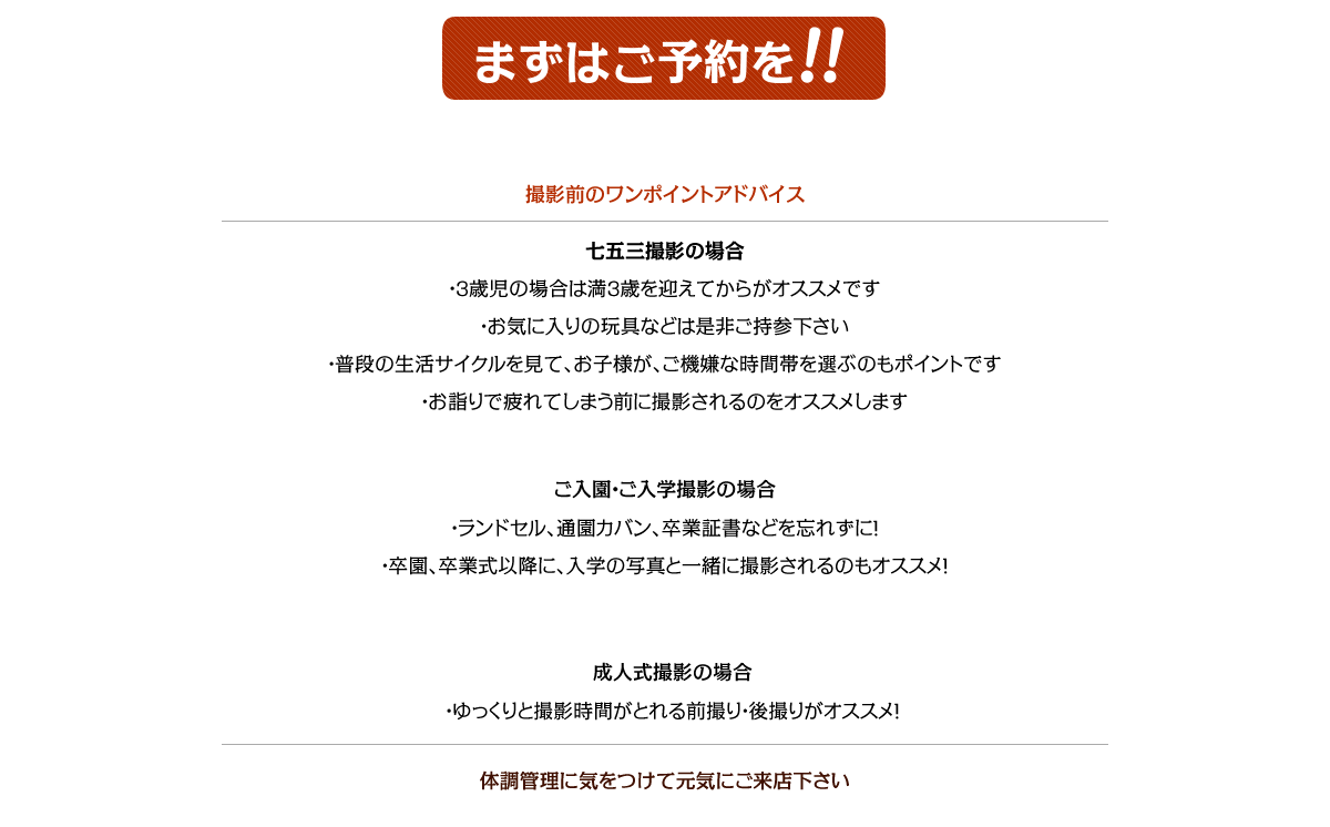 成人式・ご入園ご入学・七五三などの記念写真のご用命は郡山写真館協会のスタジオへ